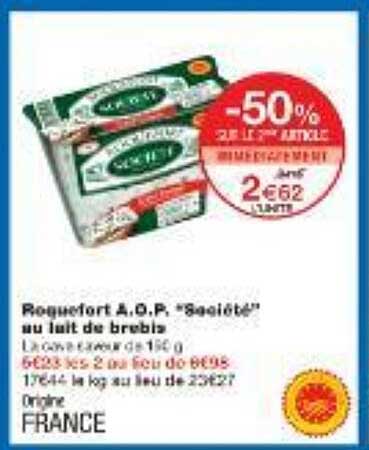 Découvrez l'offre de Roquefort A.o.p. "Société" Au Lait De Brebis chez Monoprix! Cette offre fantastique est maintenant disponible dans le nouveau catalogue de Monoprix. Profitez de cette occasion et économisez considérablement sur votre achat.