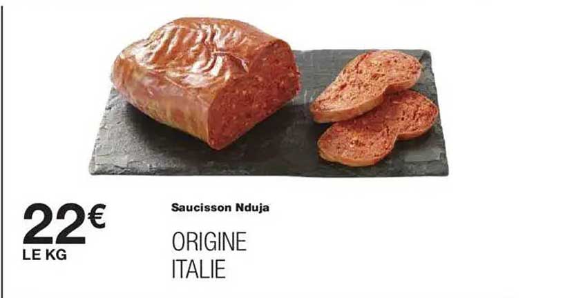 Découvrez notre délicieuse offre de Saucisson Nduja en provenance d’Italie ! Ce produit, idéal pour vos apéritifs ou vos plats cuisinés, est à la fois savoureux et original. Avec une durée de promotion du 04 au 19 octobre 2025, c'est le moment parfait pour en profiter.