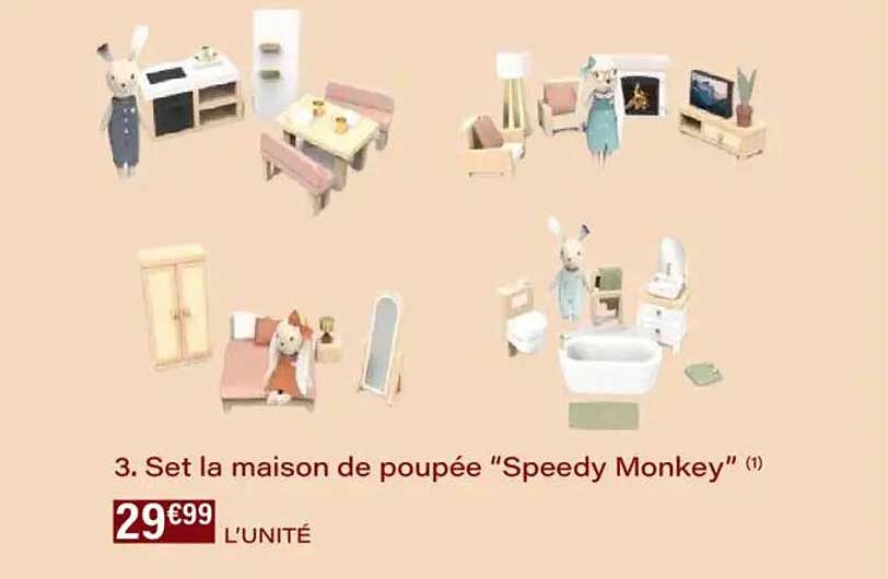 Avis aux petits comme aux grands ! Ce magnifique set de maison de poupée “Speedy Monkey” est l'élément parfait pour développer l'imaginaire des enfants. Avec ses multiples accessoires et son design soigné, cette maison de poupée offre des heures de jeux créatifs et divertissants. Que ce soit pour jouer seul ou avec des amis, ce set promet de belles aventures.