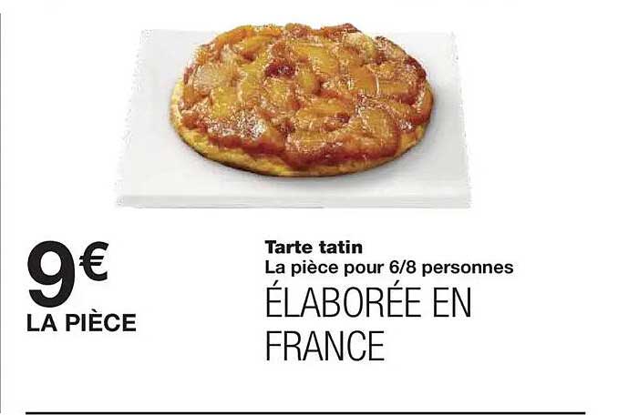 Découvrez la délicieuse tarte tatin, un incontournable des desserts français, parfaite pour vos repas en famille ou entre amis. Ce produit, élaboré en France, vous promet une expérience gustative authentique. Que vous l’associez à une boule de glace ou que vous la dégustiez seule, votre palais en redemandera !
