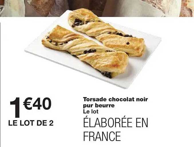 Découvrez notre délicieuse torsade au chocolat noir pur beurre, un véritable régal pour les amateurs de pâtisseries. Élaborée en France avec des ingrédients de qualité, cette offre vous permettra de savourer un moment gourmand à domicile. Profitez-en rapidement, car l’offre est valable du 21 octobre au 2 novembre 2025.