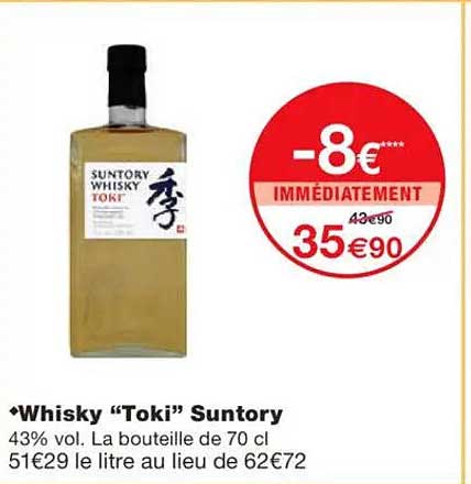 Découvrez dès maintenant la offre Whisky “Toki” Suntory dans le catalogue de Monoprix. Cette offre est valable du 09/09/2025 au 21/09/2025.