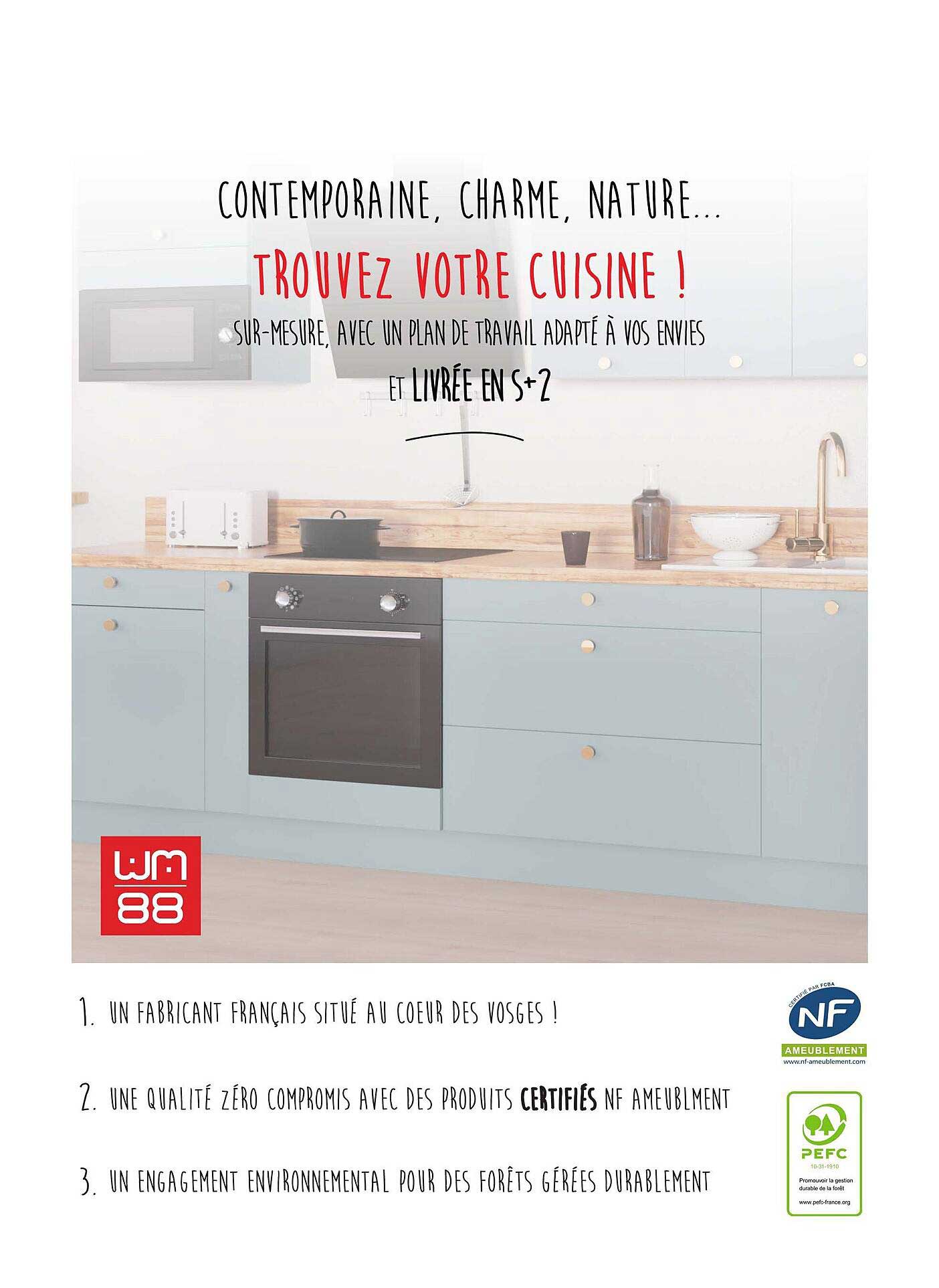 Fabriquée par un créateur français situé au cœur des Vosges, cette cuisine est conçue avec des matériaux de haute qualité, labellisés NF ameublement. Vous pouvez donc être sûr d'un mobilier durable et résistant. Les dimensions et les finitions sont entièrement ajustables selon vos besoins.