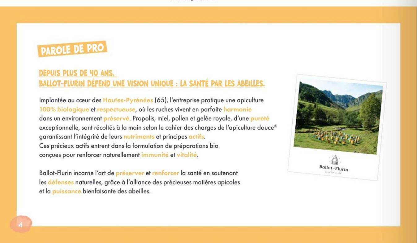 Découvrez l'univers de Ballot-Flurin, une entreprise engagée dans l'apiculture biologique depuis plus de 40 ans. Sur cette page, nous vous présentons des produits d'une pureté exceptionnelle, récoltés dans les Hautes-Pyrénées. Profitez d'une santé renforcée grâce à des préparations naturelles qui allient le meilleur de la nature et la science.