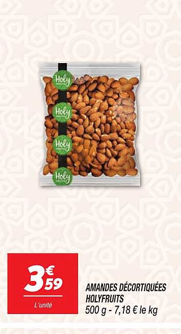 Découvrez l'offre de Amandes Décortiquées Holyfruits chez Netto! Cette offre fantastique est maintenant disponible dans le nouveau catalogue de Netto. Profitez de cette occasion et économisez considérablement sur votre achat.