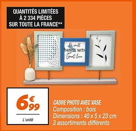 Découvrez l'offre de Cadre Photo Avec Vase chez Netto! Cette offre fantastique est maintenant disponible dans le nouveau catalogue de Netto. Profitez de cette occasion et économisez considérablement sur votre achat.