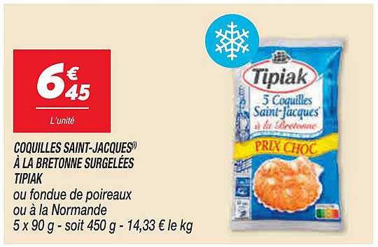 Découvrez l'offre de Coquilles Saint-Jacques® À La Bretonne Surgelées Tipiak chez Netto! Cette offre fantastique est maintenant disponible dans le nouveau catalogue de Netto. Profitez de cette occasion et économisez considérablement sur votre achat.