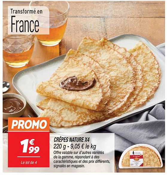 Découvrez l'offre de Crêpes Nature X4 chez Netto! Cette offre fantastique est maintenant disponible dans le nouveau catalogue de Netto. Profitez de cette occasion et économisez considérablement sur votre achat.
