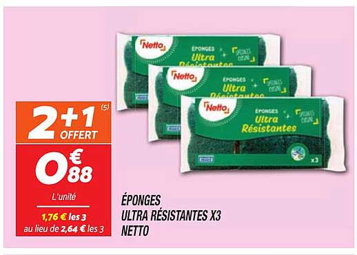 Découvrez une offre exceptionnelle sur les éponges ultra résistantes Netto ! Profitez de 3 éponges pratiques pour un prix imbattable. Idéales pour le nettoyage de votre maison, ces éponges sont conçues pour affronter les tâches les plus difficiles tout en restant douces pour vos surfaces.