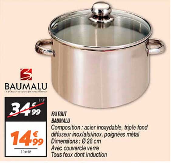 Découvrez dès maintenant la offre Faitout BAUMALU dans le catalogue de Netto. Cette offre est valable du 12/11/2024 au 18/11/2024.