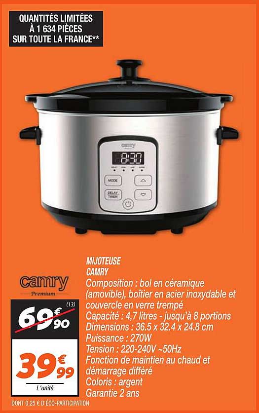 Vous voulez être informé immédiatement dès que le Mijoteuse Camry est en promotion? Inscrivez-vous à notre alerte d'offres. Vous recevrez une notification dès que le produit sera disponible à un prix avantageux.