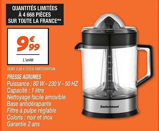 Vous voulez être informé immédiatement dès que le Presse Agrumes est en promotion? Inscrivez-vous à notre alerte d'offres. Vous recevrez une notification dès que le produit sera disponible à un prix avantageux.