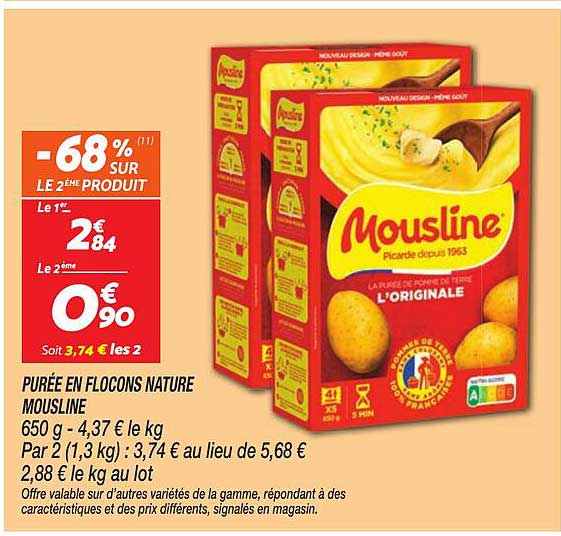 Découvrez l'offre de Purée En Flocons Nature Mousline chez Netto! Cette offre fantastique est maintenant disponible dans le nouveau catalogue de Netto. Profitez de cette occasion et économisez considérablement sur votre achat.