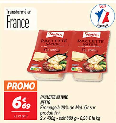 Découvrez l'offre de Raclette Nature Netto chez Netto! Cette offre fantastique est maintenant disponible dans le nouveau catalogue de Netto. Profitez de cette occasion et économisez considérablement sur votre achat.
