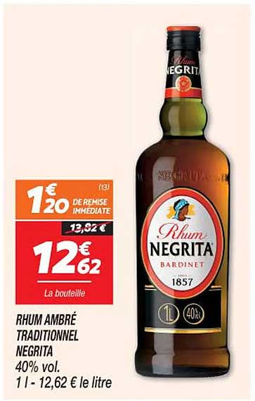 Découvrez l'offre de Rhum Ambré Traditionnel Negrita chez Netto! Cette offre fantastique est maintenant disponible dans le nouveau catalogue de Netto. Profitez de cette occasion et économisez considérablement sur votre achat.