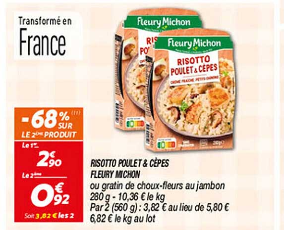Offre de Risotto Poulet & Cèpes Fleury Michon chez Netto