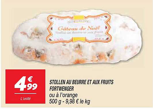 Découvrez l'offre de Stollen Au Beurre Et Aux Fruits Fortwenger chez Netto! Cette offre fantastique est maintenant disponible dans le nouveau catalogue de Netto. Profitez de cette occasion et économisez considérablement sur votre achat.