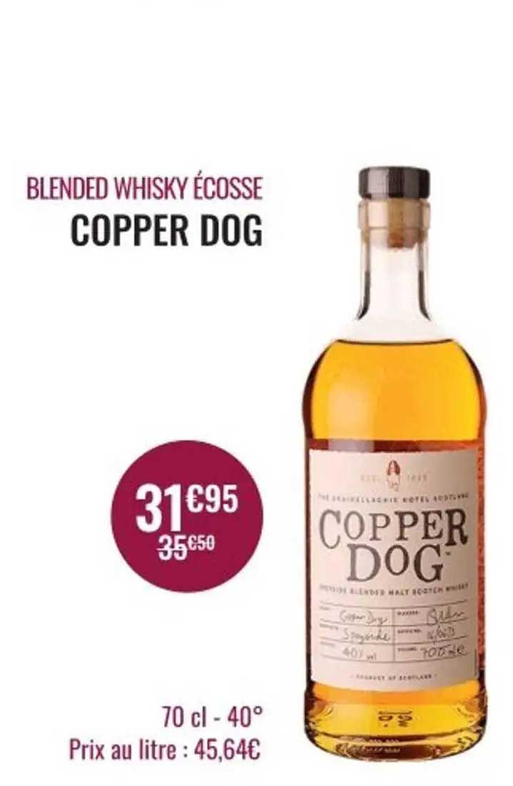 Découvrez le Copper Dog, un blended whisky écossais qui saura séduire les amateurs de belles distillations. Avec son goût riche et complexe, c'est l'accompagnement parfait pour vos soirées entre amis. Pourquoi ne pas vous offrir un moment de détente avec une gorgée de ce whisky bien élaboré ? Cette offre exceptionnelle vous permet de profiter d'un prix réduit tout en savourant un produit de qualité.