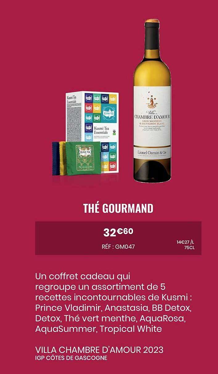 Découvrez un coffret cadeau unique qui saura ravir les amateurs de thé et de bonnes choses. Ce THÉ GOURMAND regroupe un assortiment de 5 recettes incontournables de Kusmi, offrant une variété de saveurs raffinées, parfaites pour les moments de détente ou à partager lors d'une occasion spéciale. Avec cette offre, vous n'avez plus d'excuses pour ne pas vous faire plaisir ou pour offrir un cadeau de qualité à vos proches.