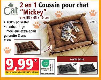 Offre de 2 En 1 Coussin Pour Chat "Mickey" chez Norma
