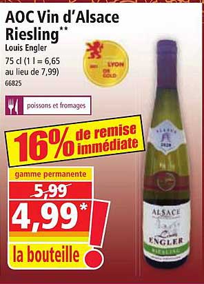 Découvrez l'offre de Aoc Vin D'alsace Riesling** chez Norma! Cette offre fantastique est maintenant disponible dans le nouveau catalogue de Norma. Profitez de cette occasion et économisez considérablement sur votre achat.