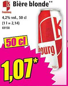Actuellement, cette Bière blonde est proposée au prix très attractif de 1,07 €. En comparaison avec son prix habituel de 2,14 € par litre, cette offre vous fait réaliser une belle économie. Ne manquez pas cette chance de remplir votre réfrigérateur à petit prix !