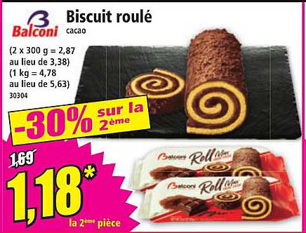 Découvrez le délicieux biscuit roulé au cacao de Balconi, une douceur irrésistible qui ravira vos papilles ! À seulement 1,18 € pour la deuxième pièce, profitez d'une réduction de -30 % sur cette savoureuse gourmandise.