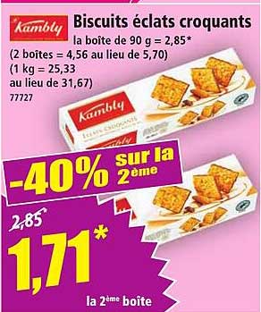 Découvrez l'exquise douceur des biscuits éclats croquants de Kambly, une offre parfaite pour les gourmands ! Avec une réduction exceptionnelle de 40% sur la deuxième boîte, c'est le moment idéal pour faire le plein de ces délices croustillants. Profitez de cette promotion du 22 au 28 octobre 2025, un vrai bon plan à ne pas manquer ici.