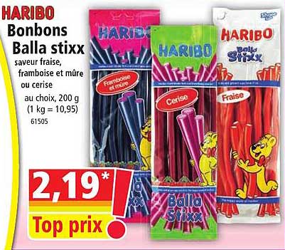 Découvrez dès maintenant la offre Bonbons Balla stixx dans le catalogue de Norma. Cette offre est valable du 19/03/2025 au 25/03/2025.