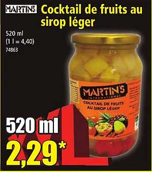 Découvrez la superbe offre de Cocktail De Fruits Au Sirop Léger dans le nouveau catalogue de Norma. En plus de cette offre, vous trouverez de nombreuses autres réductions attrayantes. Vous pouvez facilement commander le Cocktail De Fruits Au Sirop Léger en ligne via le site web de Norma ou l'acheter dans un magasin près de chez vous.