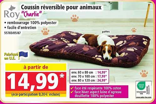 Découvrez dès maintenant la offre Coussin réversible pour animaux "Charlie" dans le catalogue de Norma. Cette offre est valable du 03/12/2025 au 09/12/2025.