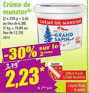Découvrez l'offre de Crème De Munster chez Norma! Cette offre fantastique est maintenant disponible dans le nouveau catalogue de Norma. Profitez de cette occasion et économisez considérablement sur votre achat.