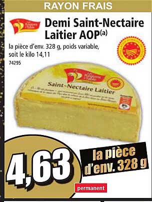 Découvrez l'offre de Demi Saint-Nectaire Laitier Aop chez Norma! Cette offre fantastique est maintenant disponible dans le nouveau catalogue de Norma. Profitez de cette occasion et économisez considérablement sur votre achat.