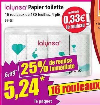 Découvrez notre incroyable promotion sur le papier toilette Lalynéa ! Profitez de 16 rouleaux de 130 feuilles, parfaits pour répondre à tous vos besoins quotidiens. À un prix réduit, cette offre est idéale pour les familles ou ceux qui souhaitent faire des économies sans compromettre la qualité.
