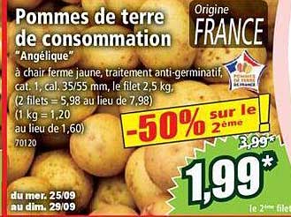 Découvrez l'offre de Pommes De Terre De Consommation "Angélique" chez Norma! Cette offre fantastique est maintenant disponible dans le nouveau catalogue de Norma. Profitez de cette occasion et économisez considérablement sur votre achat.