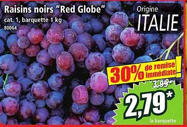 Découvrez les délicieux raisins noirs "Red Globe" en provenance directe d'Italie. Cette offre exceptionnelle vous permet de savourer des fruits juteux et sucrés tout en réalisant des économies. Profitez de cette promotion valable du 15 au 21 octobre 2025 pour faire le plein de ces pépites gourmandes !