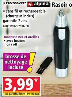 Découvrez le rasoir sans fil et rechargeable, idéal pour prendre soin de votre apparence avec simplicité et rapidité. Cette offre exceptionnelle vous permet de vous procurer un outil pratique pour l'entretien de votre nez et de vos oreilles, à un prix imbattable ! Avec une garantie de 2 ans, vous pouvez acheter en toute confiance.