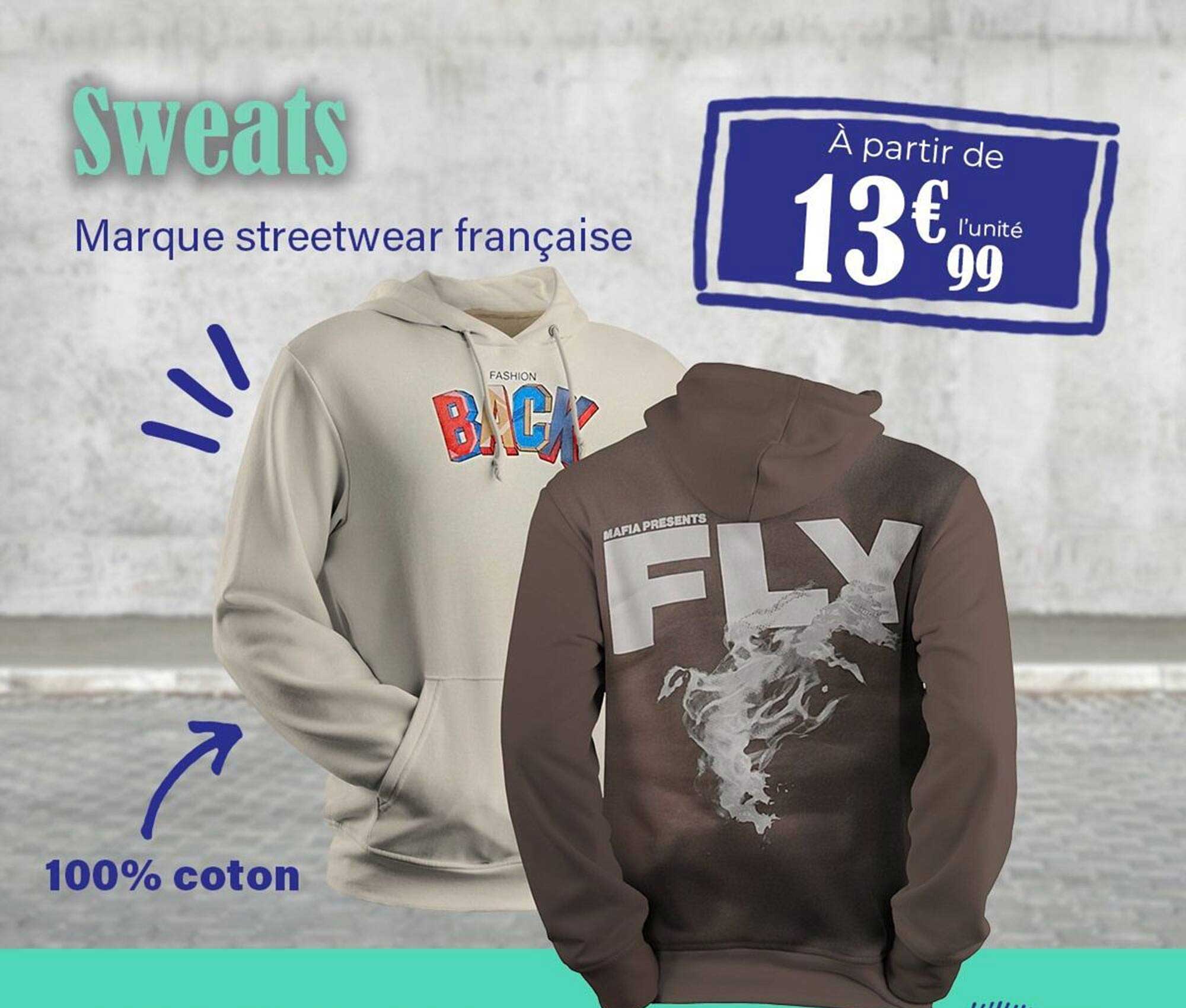 Découvrez notre sélection incontournable de sweats de marque streetwear française, disponibles à partir de 13€99 l’unité. C'est l'occasion rêvée de renouveler votre garde-robe tout en ajoutant une touche tendance à votre style.