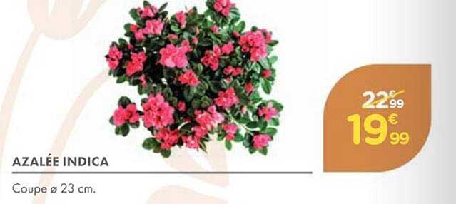 Découvrez l'Azalée Indica, une plante d'intérieur magnifique qui embellira votre espace. Avec ses fleurs colorées et son feuillage luxuriant, elle est parfaite pour apporter une touche de nature dans votre maison. Ne manquez pas cette promotion exceptionnelle, valable jusqu'au 2 novembre 2025, pour profiter d'un prix imbattable.
