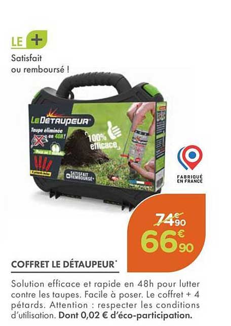 Découvrez aujourd'hui le Coffret Le Détraupeur, une solution astucieuse et rapide pour éliminer les taupes de votre jardin en seulement 48 heures. Grâce à son efficacité avérée, ce produit vous permettra de retrouver un espace extérieur paisible et agréable. C'est le moment idéal pour profiter de cette promotion incroyable, où efficacité rime avec économies ! Retrouvez tous les détails ici.