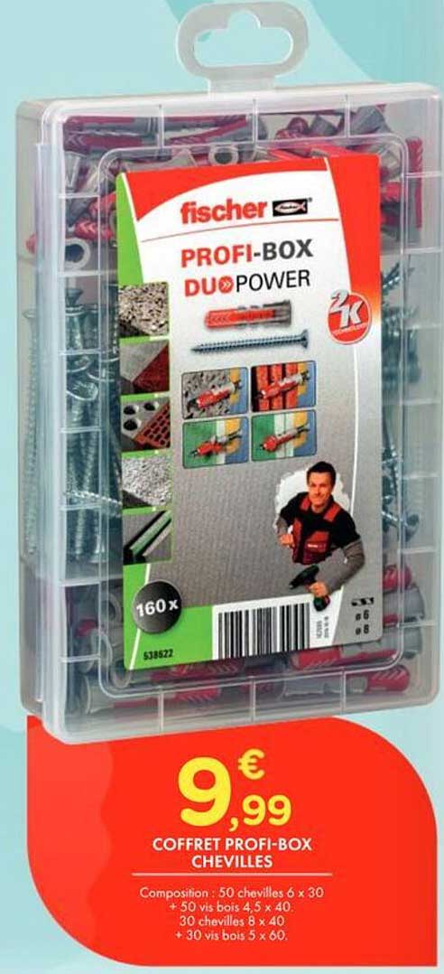 Vous cherchez la solution idéale pour vos travaux de bricolage ? Ne cherchez plus ! Le coffret Profi-Box Chevilles de Fischer est là pour vous accompagner dans tous vos projets. Avec ses 160 pièces, ce coffret offre un excellent rapport qualité-prix, parfait pour les amateurs comme pour les professionnels.