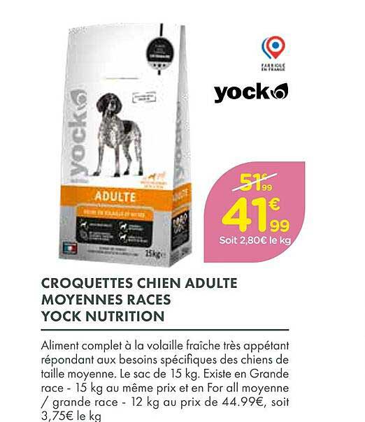 Découvrez l'offre de Croquettes Chien Adulte Moyennes Races Yock Nutrition chez Point Vert! Cette offre fantastique est maintenant disponible dans le nouveau catalogue de Point Vert. Profitez de cette occasion et économisez considérablement sur votre achat.