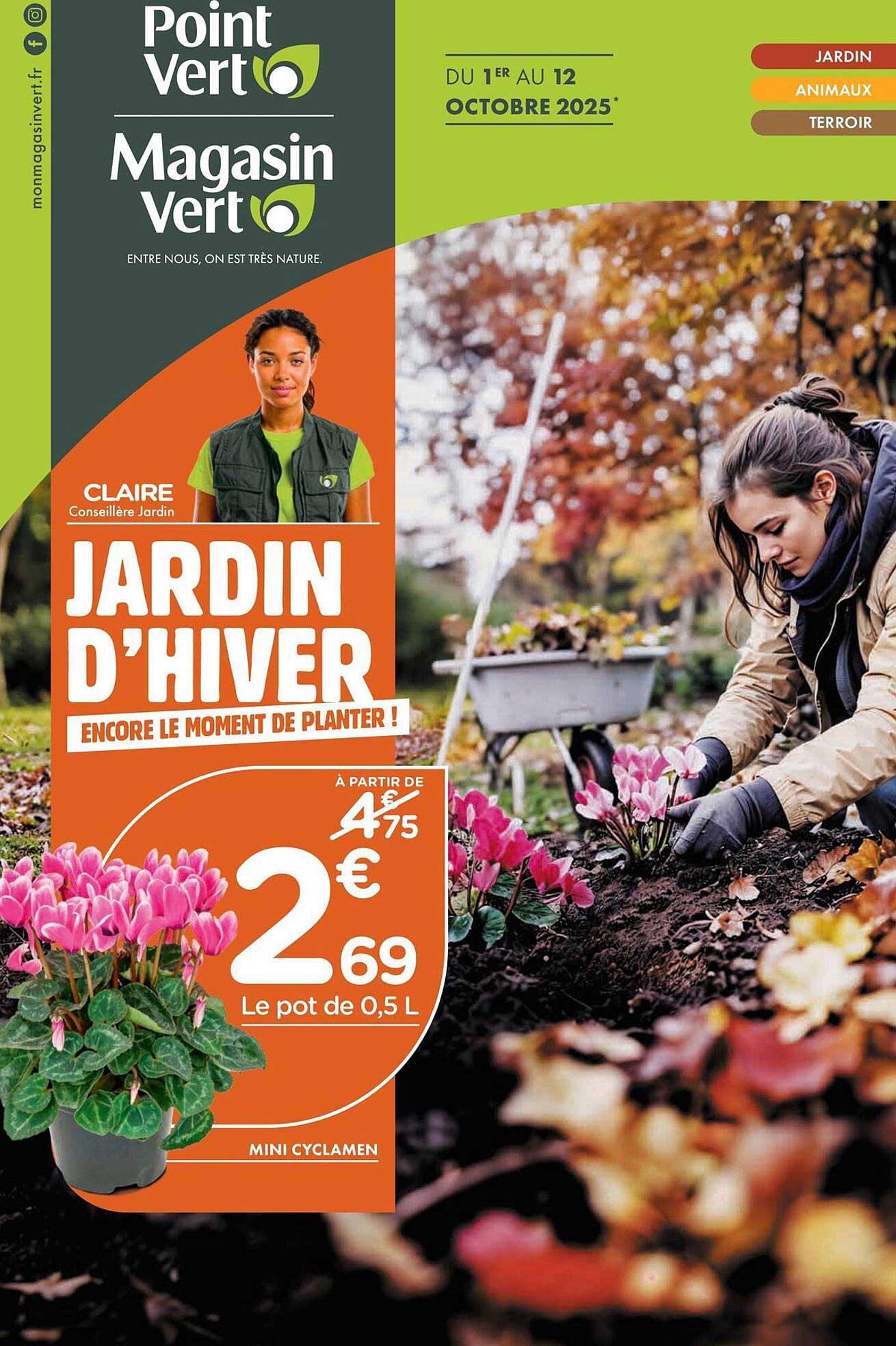 Découvrez dès maintenant la offre JARDIN D'HIVER dans le catalogue de Point Vert. Cette offre est valable du 07/10/2025 au 12/10/2025.