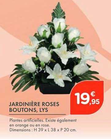 Découvrez la jardinière roses boutons et lys, une magnifique décoration florale qui apportera une touche d'élégance à votre intérieur. Que ce soit pour embellir votre salon, votre bureau ou pour un cadeau, cette jardinière en plantes artificielles est une excellente affaire à ne pas manquer pendant la période de promotion.