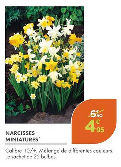 Les Narcisses Miniatures, un mélange de couleurs vibrantes, sont parfaits pour embellir votre jardin ou votre balcon. Disponibles en sachets de 25 bulbes, ces fleurs apporteront une touche joyeuse et printanière à votre espace extérieur. Ne manquez pas cette occasion de transformer votre jardin avec ces belles petites fleurs !