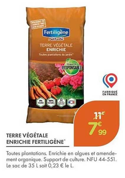 Vous cherchez à embellir votre jardin ou à améliorer votre potager ? Ne ratez pas cette opportunité exceptionnelle de vous procurer de la terre végétale enrichie Fertiligène, disponible à un prix avantageux du 7 au 12 octobre 2025. Cette terre est idéale pour toutes vos plantations et promesse d'une croissance saine et vigoureuse.