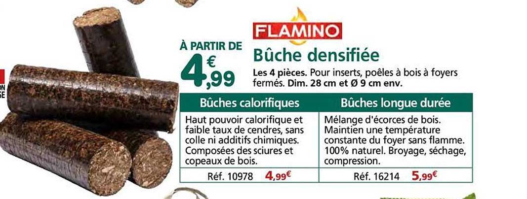 Découvrez l'offre exceptionnelle sur les bûches densifiées de la marque FlaminO, à un prix imbattable à partir de seulement 4,99 €. Ces bûches sont idéales pour vos inserts et poêles à bois. Avec des dimensions parfaites de 28 cm de longueur et 9 cm de diamètre, elles s'intègrent facilement dans vos foyers fermés. Profitez de cette offre valable du 7 au 26 octobre 2025 pour vous chauffer efficacement tout en faisant des économies.