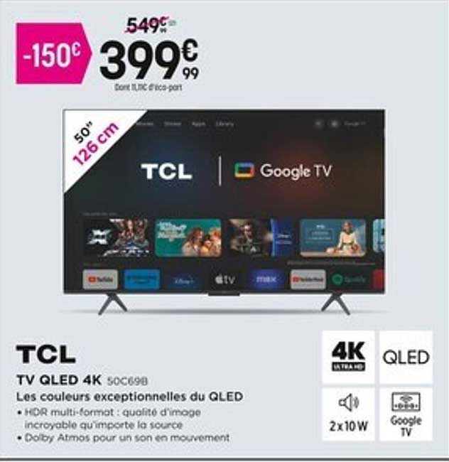 Découvrez l'incroyable téléviseur TCL QLED 4K, le modèle SOC698, celui qui transformera votre expérience de visionnage. Avec un écran de 50 pouces (126 cm), ce téléviseur offre une qualité d'image impressionnante grâce aux couleurs vives et réalistes propres à la technologie QLED. Cette offre exceptionnelle vous permet de profiter de fonctionnalités de pointe à un prix réduit. Ne manquez pas cette chance de vous offrir un incontournable pour vos soirées cinéma !