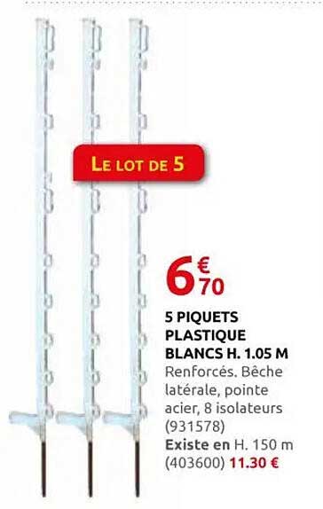 Découvrez l'offre de 5 Piquets Plastique Blancs H. 1.05 M chez Rural Master! Cette offre fantastique est maintenant disponible dans le nouveau catalogue de Rural Master. Profitez de cette occasion et économisez considérablement sur votre achat.