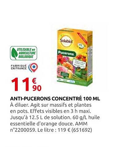 Actuellement proposé à seulement 11,90 €, cet anti-pucerons représente un excellent rapport qualité-prix. Comparé à d'autres traitements sur le marché, cette offre vous permet d'économiser tout en bénéficiant d'un produit de qualité certifiée. Ne manquez pas cette opportunité de protéger vos plantes à un tarif avantageux.